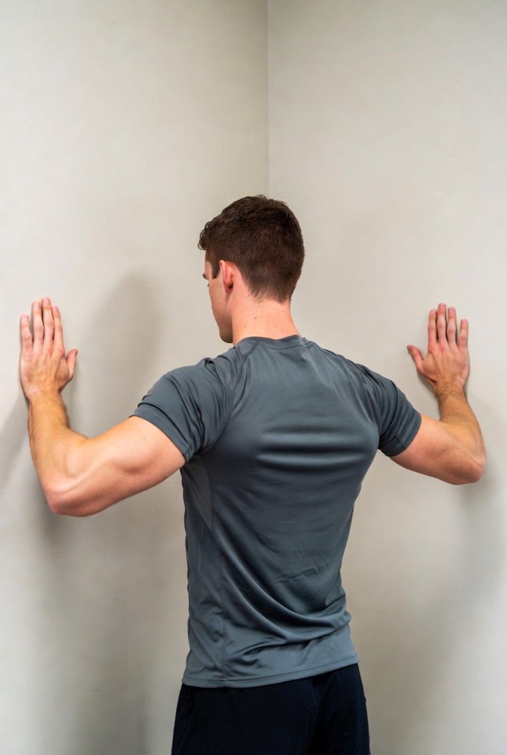 The Lean: Slowly lean your chest into the corner until you feel a deep, opening stretch across the front of your shoulders and chest.